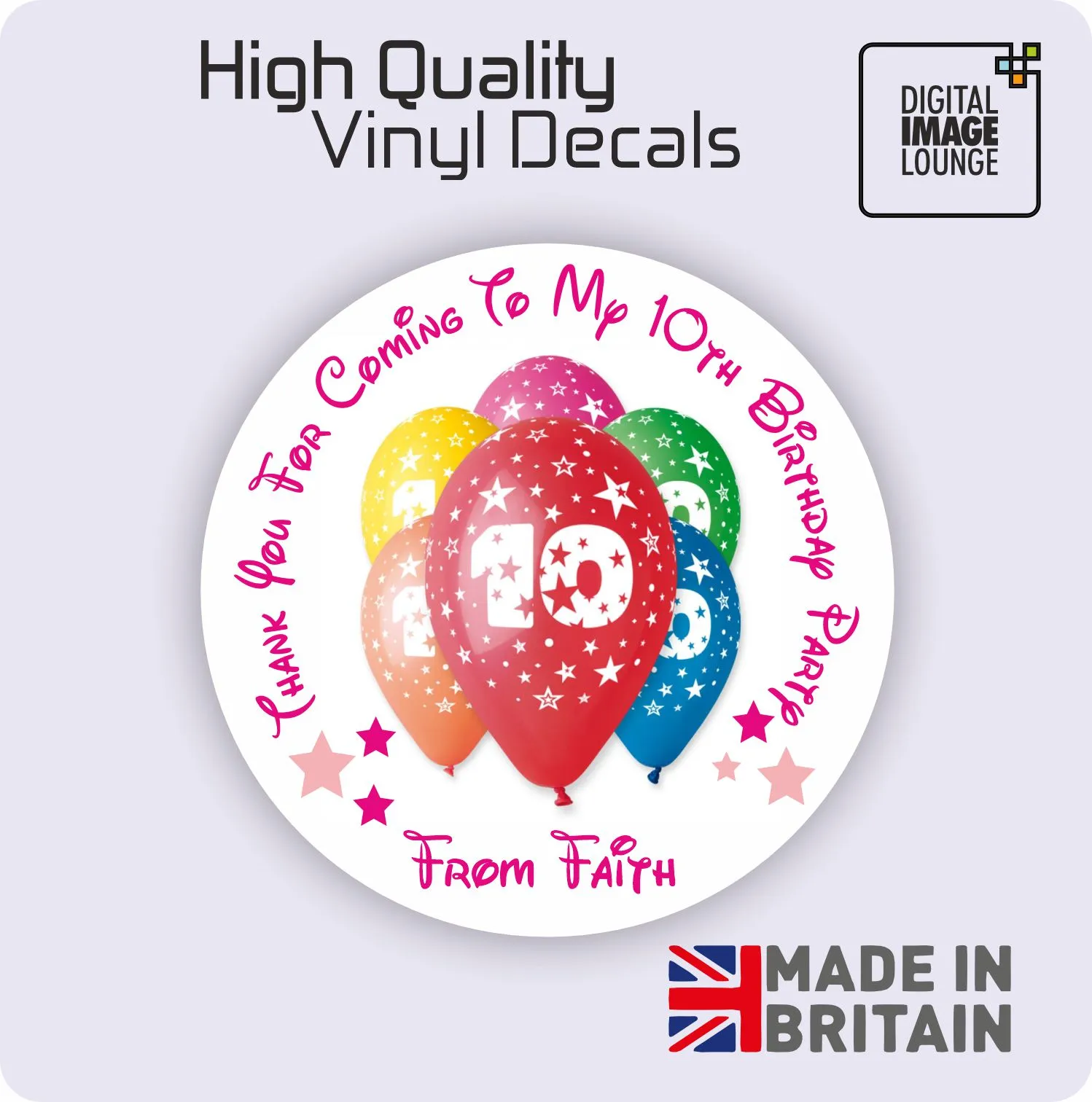 Personalised printed round stickers that will make a great addition to party bags & sweet cones.