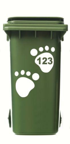 1 SET x WHEELIE BIN/RECYCLING HOUSE NUMBERS STICKERS PAW PRINT STYLE.