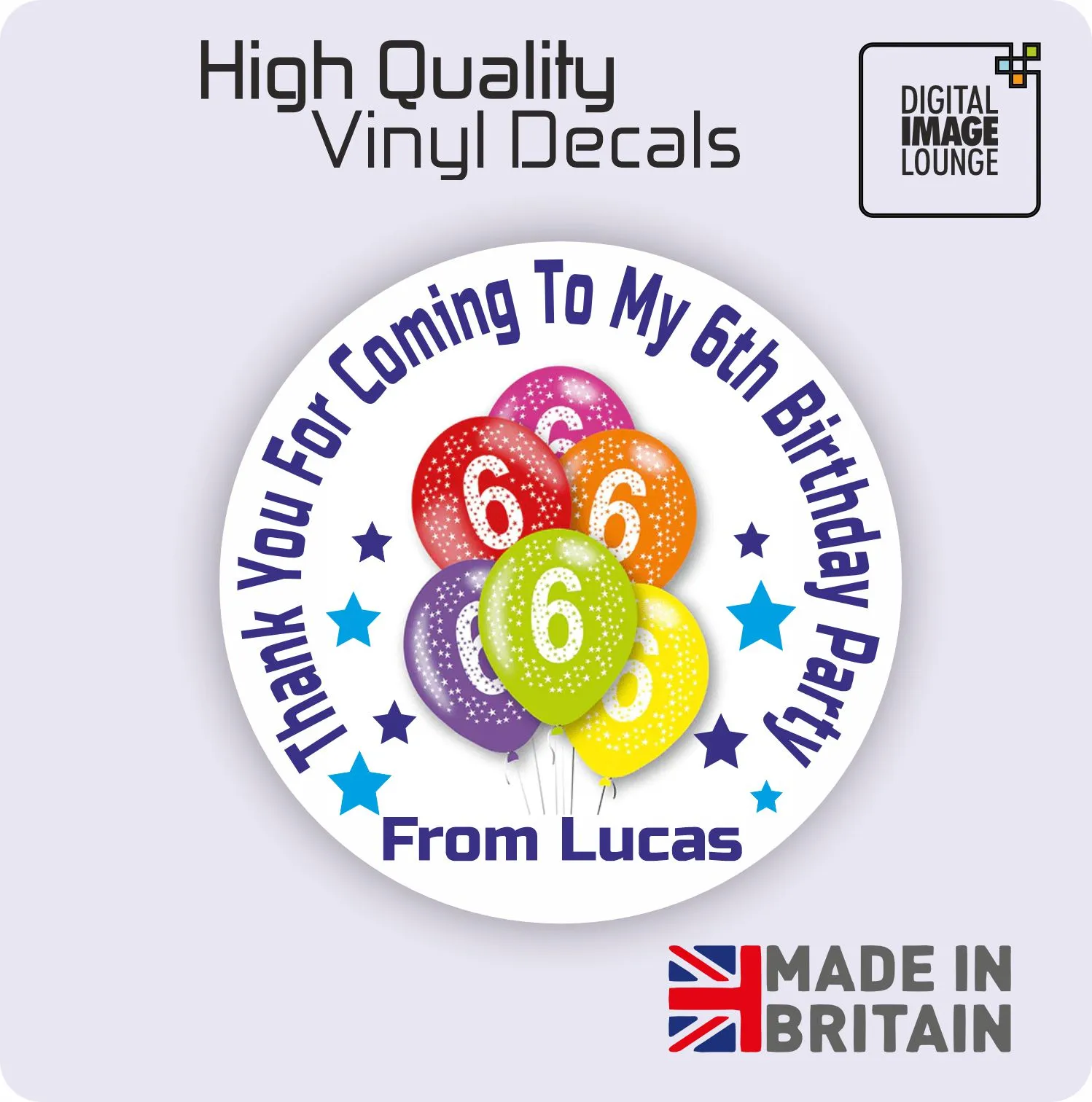Personalised printed round stickers that will make a great addition to party bags & sweet cones.