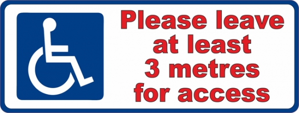 1 X 84mm x 215mm Vehicle mobility wheelchair sticker "Please leave at least 3 metres for access" (with easy to follow fitting instructions).