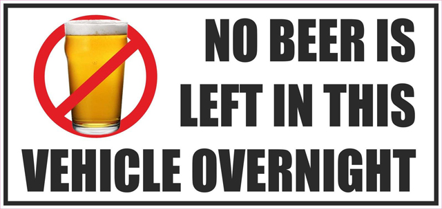 1 X 95mm x 200mm Vehicle sticker "No Beer Is Left In this Vehicle Overnight" (with easy to follow fitting instructions).