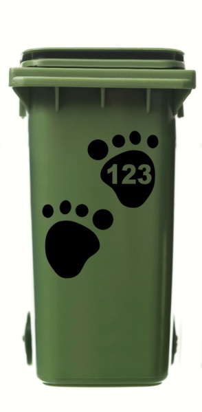 1 SET x WHEELIE BIN/RECYCLING HOUSE NUMBERS STICKERS PAW PRINT STYLE.